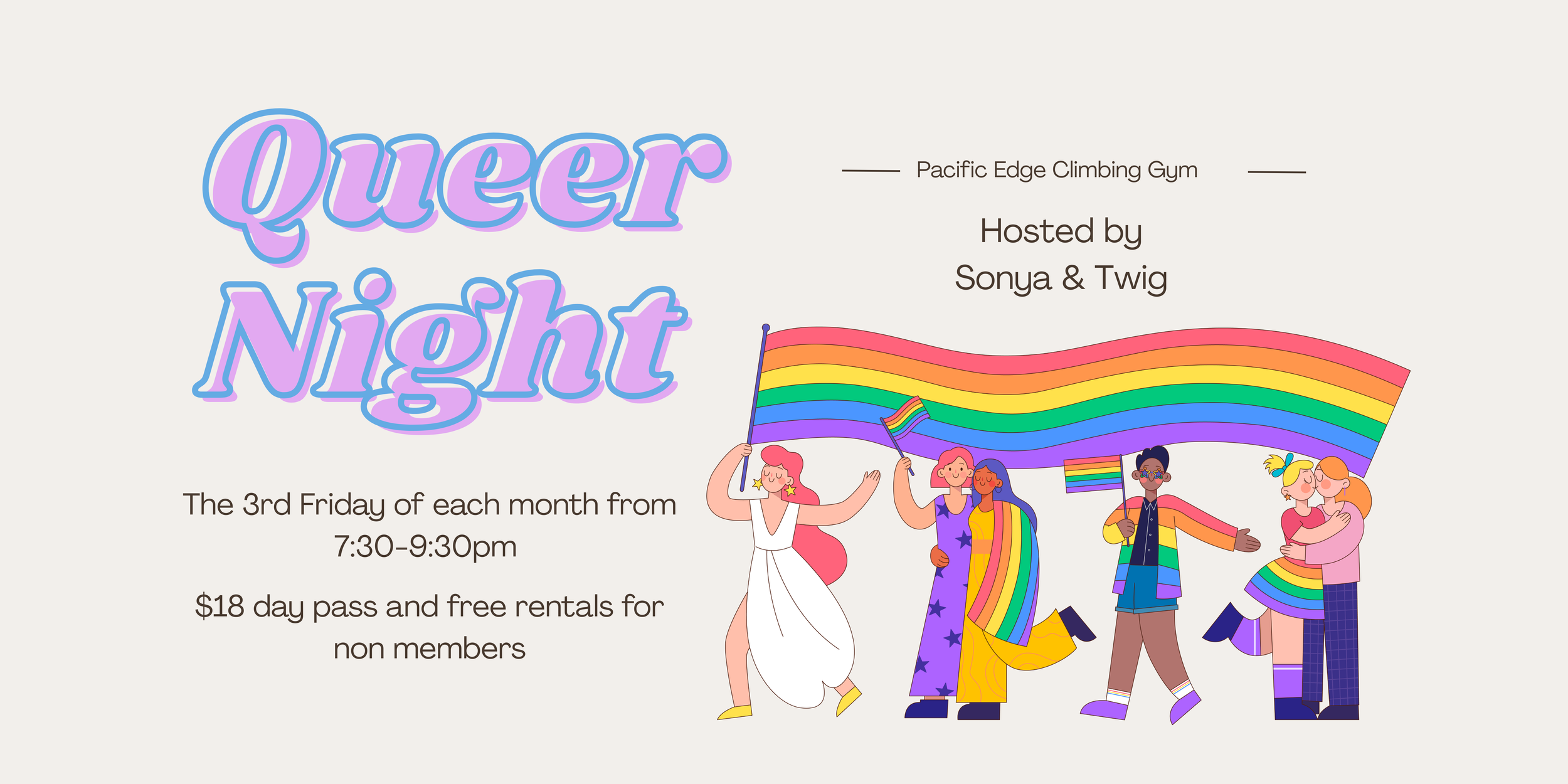 Every 3rd Friday of the month, we’ll be hosting a meet-up for the climber gays of our community. Trans or cis, fifteen or fifty, pan or asexual, etc. You will be safe & welcome in our inclusive space. We strive to foster an environment of respect, safety, diversity and community building while meeting/having a blast with like-minded folx! All levels of climbing experience are welcome, from first timers to well-seasoned trad daddis. We have a zero tolerance policy against any and all discrimination such as transphobia, biphobia, racism, sexism, ageism, ableism, xenophobia, and (obviously) homophobia. No TERFs & no SWERFs, period.